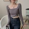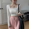 Square Collar Short Tops for Women New Korean Style Slim-fitting Bottoming Shirts Long-sleeved T-shirts Trendy