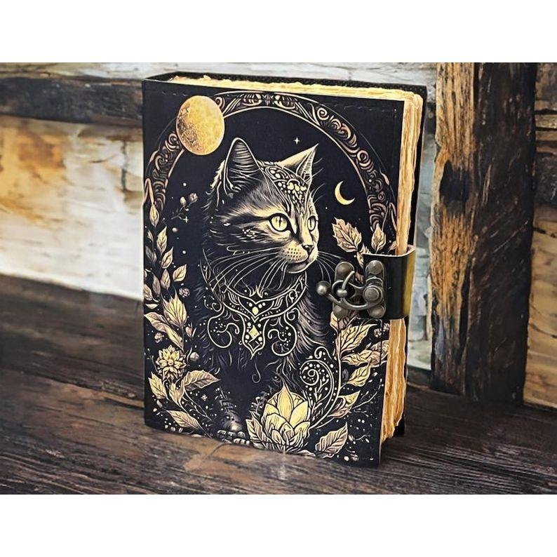 Celtic Cat Leather Journal • Handmade Grimoire Book of Shadows • Gift for Witches & Cat Lovers”