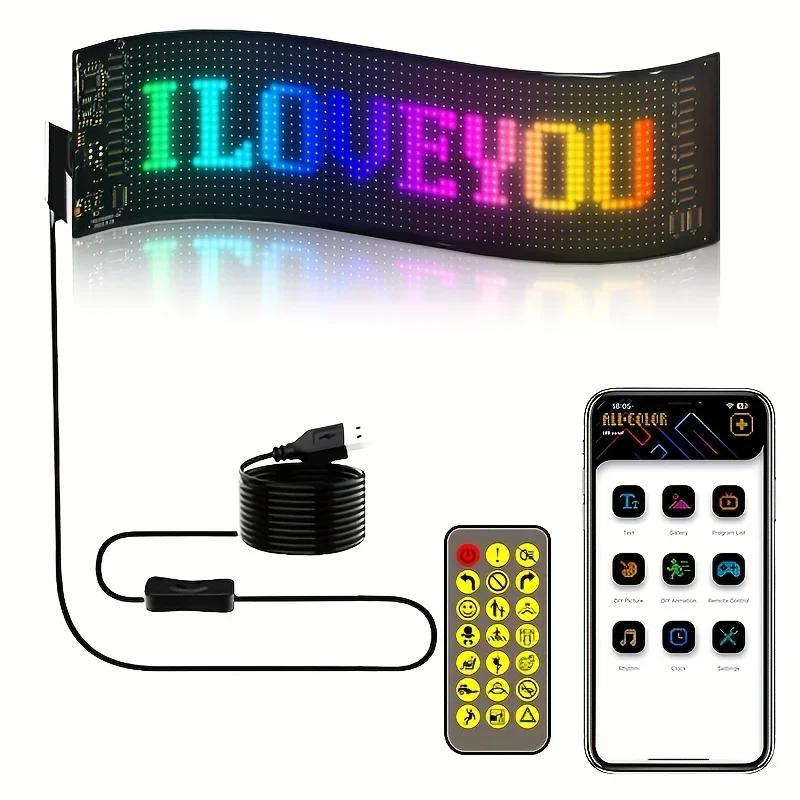 Flexible Programmable LED Matrix Panel Sign USB Scrolling Display with APP Remote Control DIY Pixel Light Board for Car Store