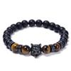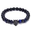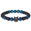 Wolf Charm Bracelets Men Natural Black Agates Onyx Stone Bracelet Brave Blue Tiger Eye Elastic 8 Mm Beads Beaded Pulsera