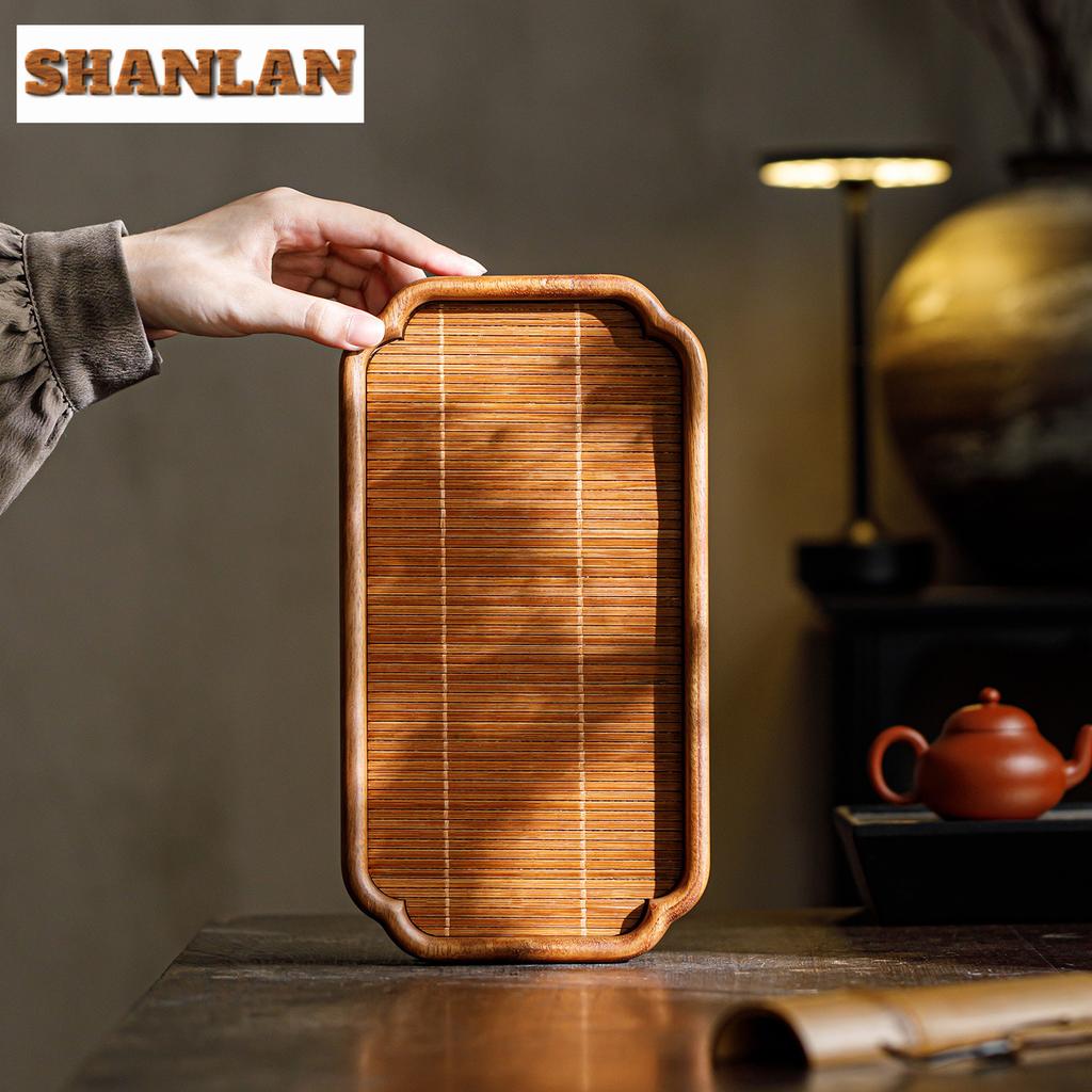 Walnut Wood Bamboo Mat Water Storage Tea Tray Snack Plate Coffee Storage Board Decorative Tray Dishes For Serving Drinkware