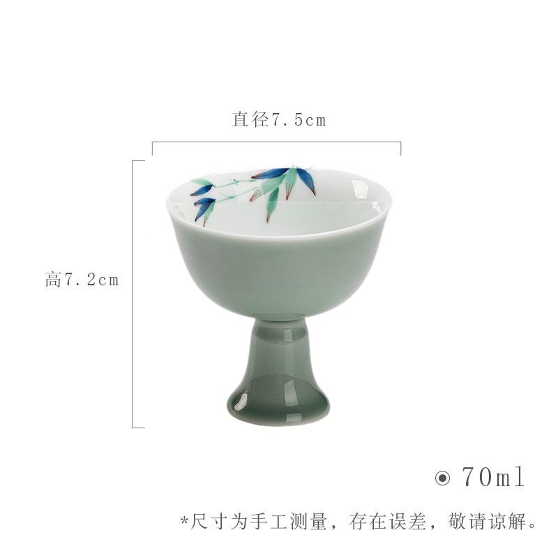 2pc/lot Green Plum High-feet Teacup Boutique Ceramic Master Cup Small Tasting Mug Antique Meditation Cup Cafes Teaset 70ml
