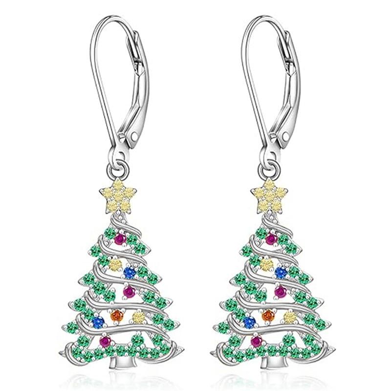 Huitan Exquisite Christmas Tree Pendant Earrings Female Party Accessories with Bright Zirconia Silver Color for New Year
