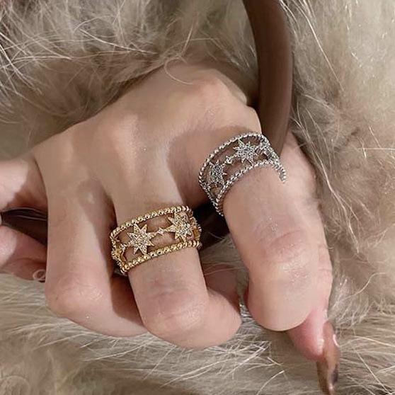 Zircon Double-layer Mango Hollow Opening Ring, Simple and Elegant Versatile Index Finger Ring, Light Luxury Ring.