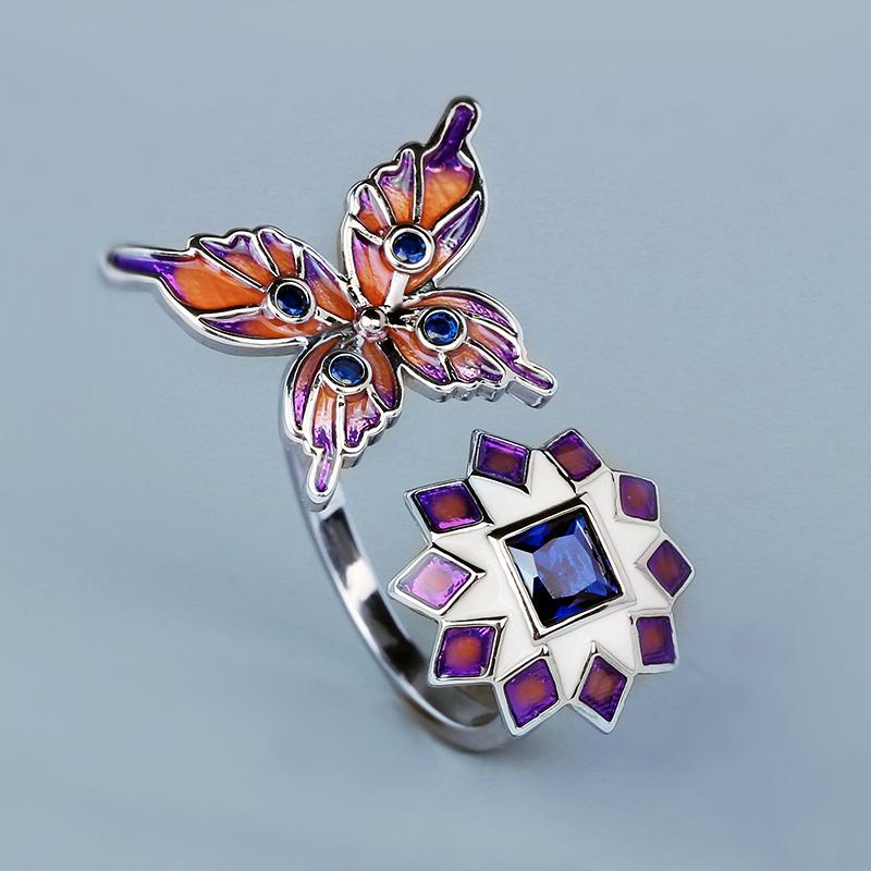 Hot Selling Ring for Ladies Time Butterfly Flower Open Ring Red Green Handmade Enamel Party Birthday Gift