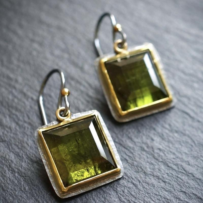Huajie Golden Edged Square Zircon Inlaid for Women Earrings Dainty Vintage Elegant Ladys New Ear Fashion Trend