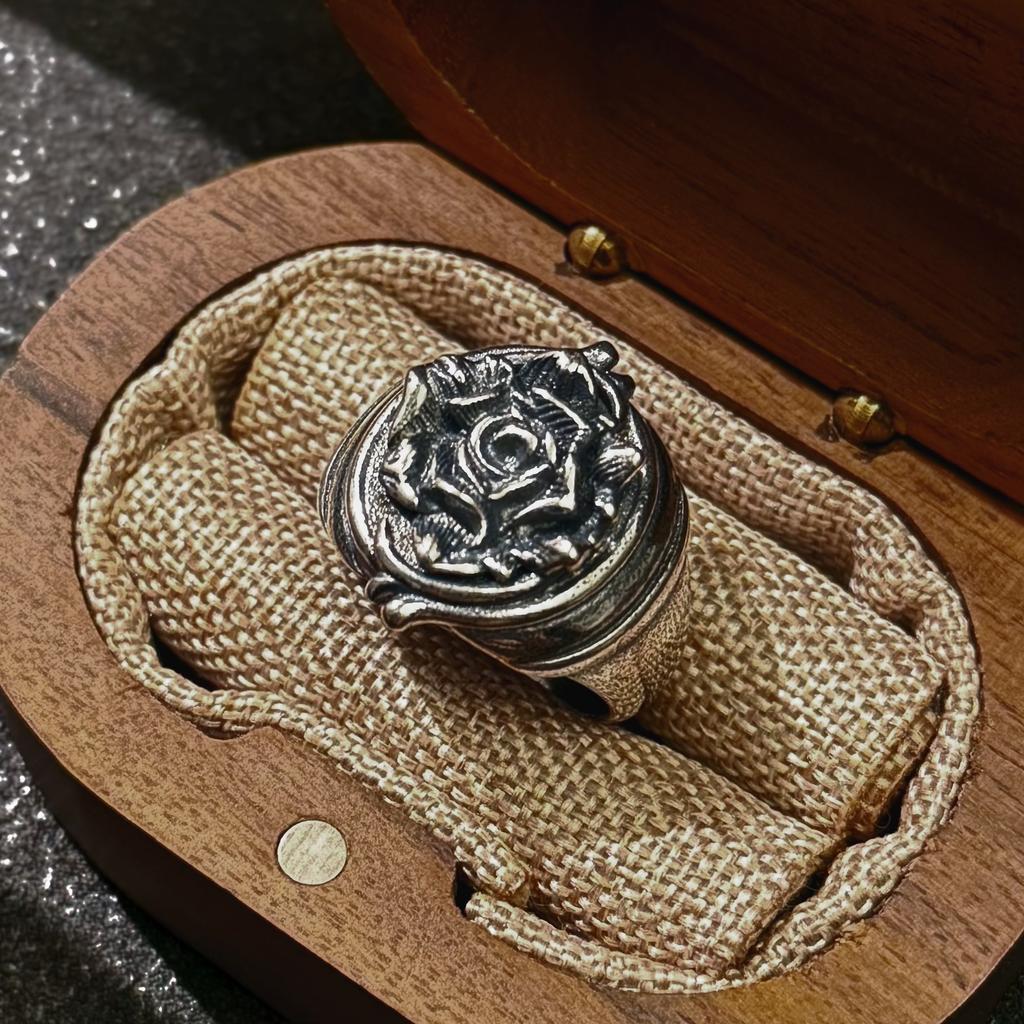 Retro Dark Rose Adjustable Open Ring For Men Silver-plated Copper Gothic Punk Edgy Vintage Floral Accessories Cool Gift