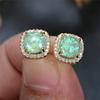 Female Luxury Green Crystal Zircon Stone Stud Earrings Vintage Gold Color Wedding For Women