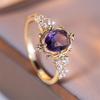 Trendy Purple Crystal Oval Stone Flower Rings For Women Vintage Gold Color Bridal Wedding Band Bithstone Engagement Gift