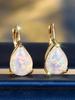 Female White Opal Water Drop Stone Hoop Earrings Vintage Fashion Gold Silver Color Wedding For Women