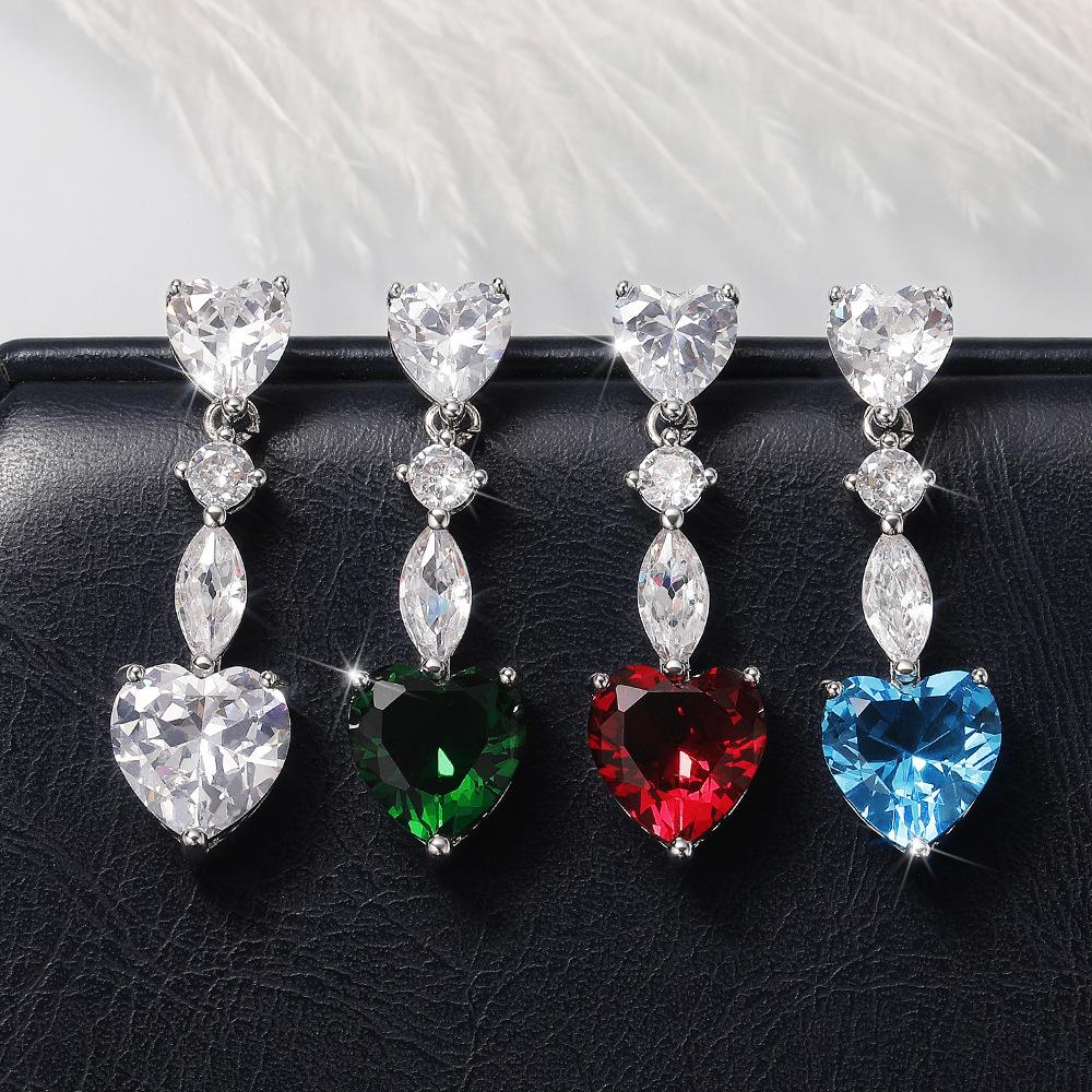Trendy Elegant Created Red Heart Zircon Earrings Silver Needle String Statement Drop Earrings for Women Wedding Party Gift
