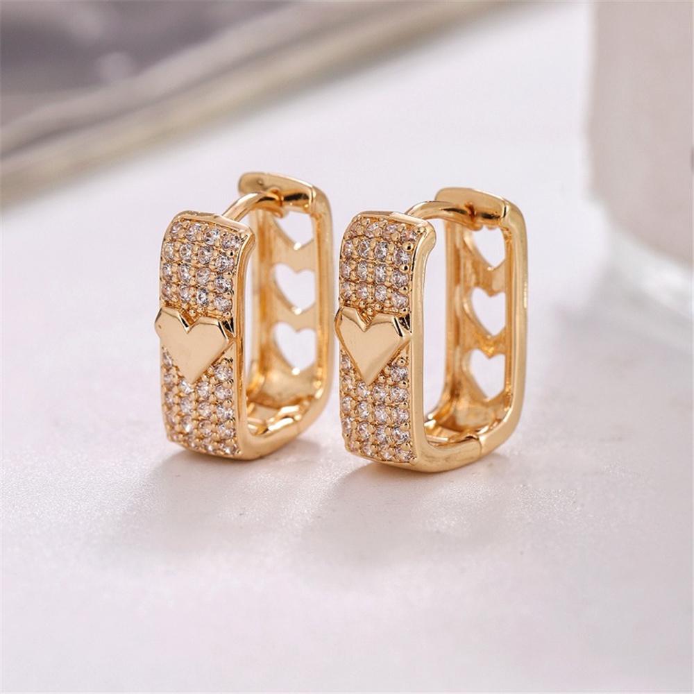 Luxury Female Gold Color Heart White Zircon Stone Hoop Earrings Bridemaids Gifts Wedding For Women