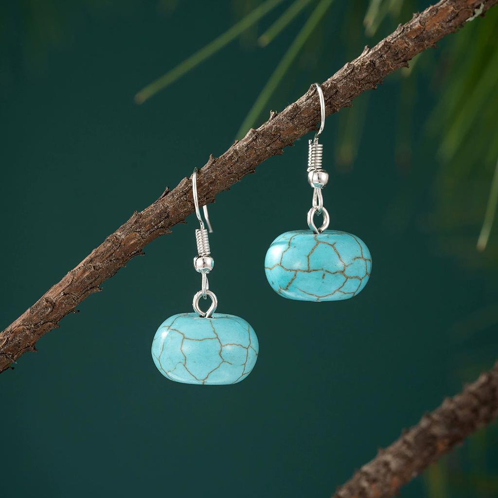 Multiple Design Vintage Natural Turquoise Stone Drop Earrings for Women Silver Color Stone Beads Dangle Earrings