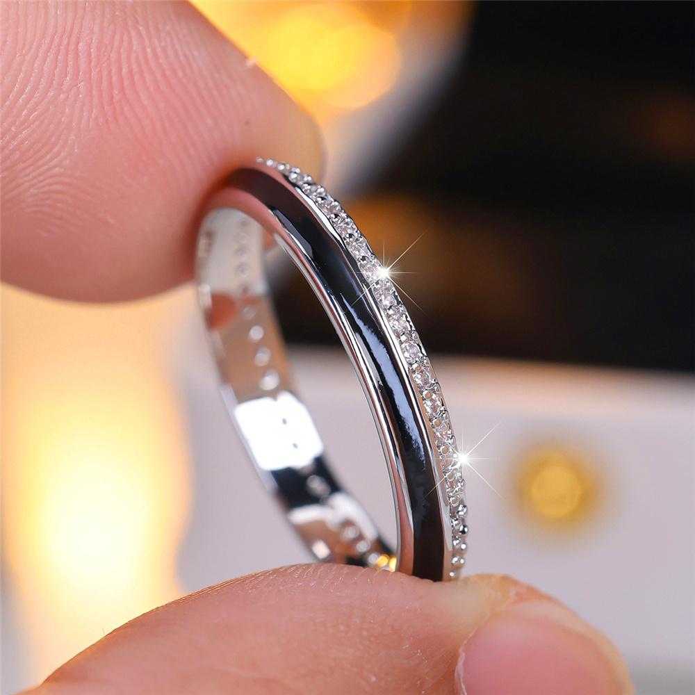 Cute Female Black Enamel Engagement Ring Vintage Silver Color Wedding For Women