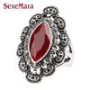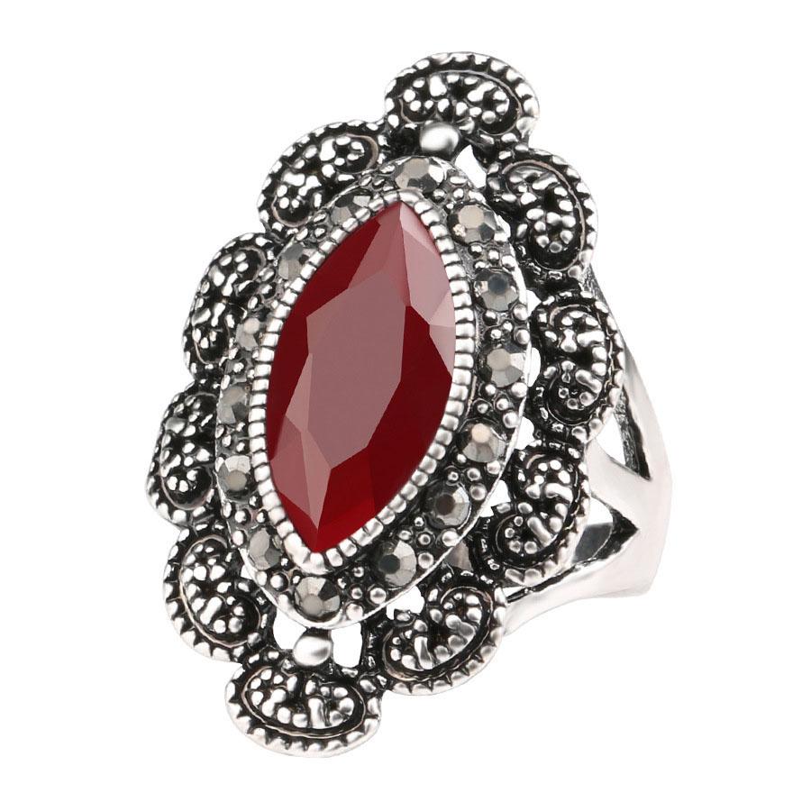Turkey Vintage Peridot Ring Red/black Stone Bague Femme Boho Anel Party Crystal Rings Woman Anillos Mujer