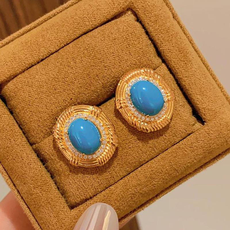 Turquoise Sets New In Vintage Palace Style Ring Light Luxury Fashion Stud Party Wedding Romantic Earrings for Women