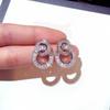 Female 5A Zircon Stud Earrings Fashion Circle Connection Stud Earrings Sterling Silver Earrings for Women Wedding