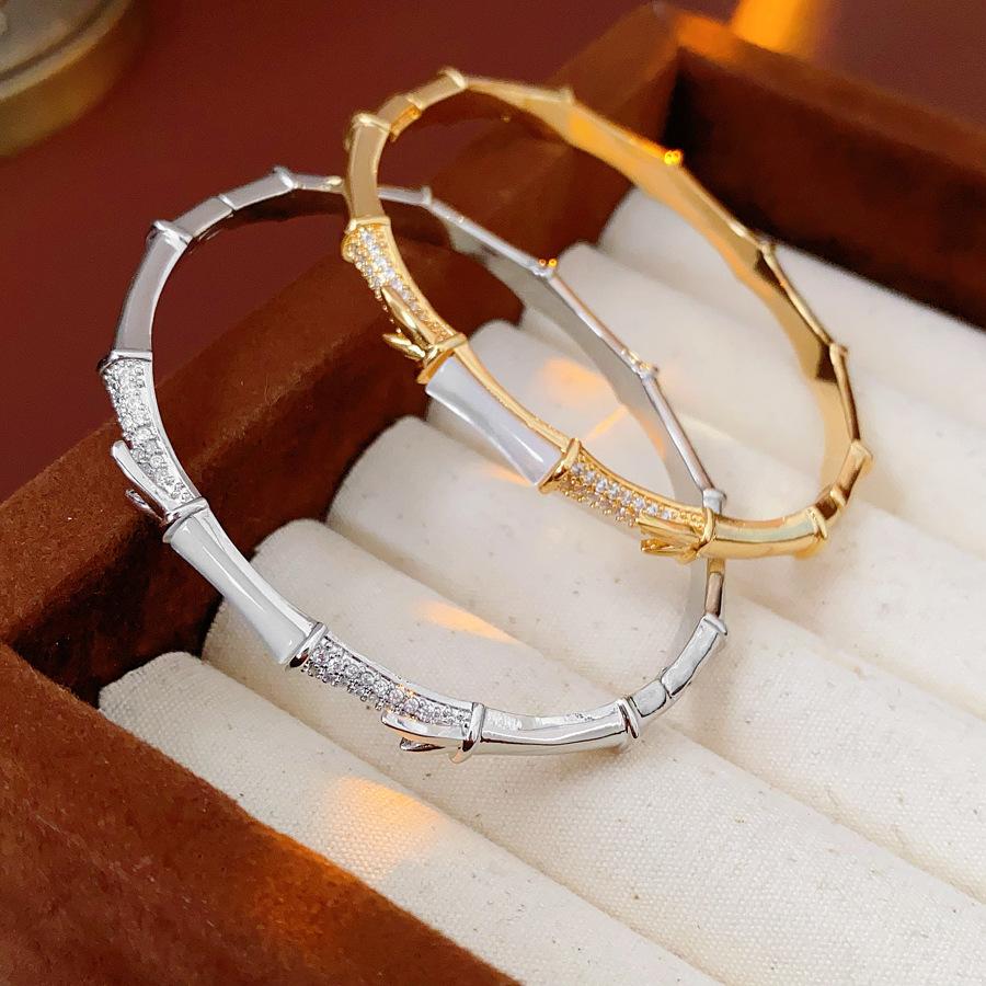 Real Gold Electroplated Zircon Mother of Pearl Bamboo Knot New Chinese Retro Versatile High-end Niche Bracelet