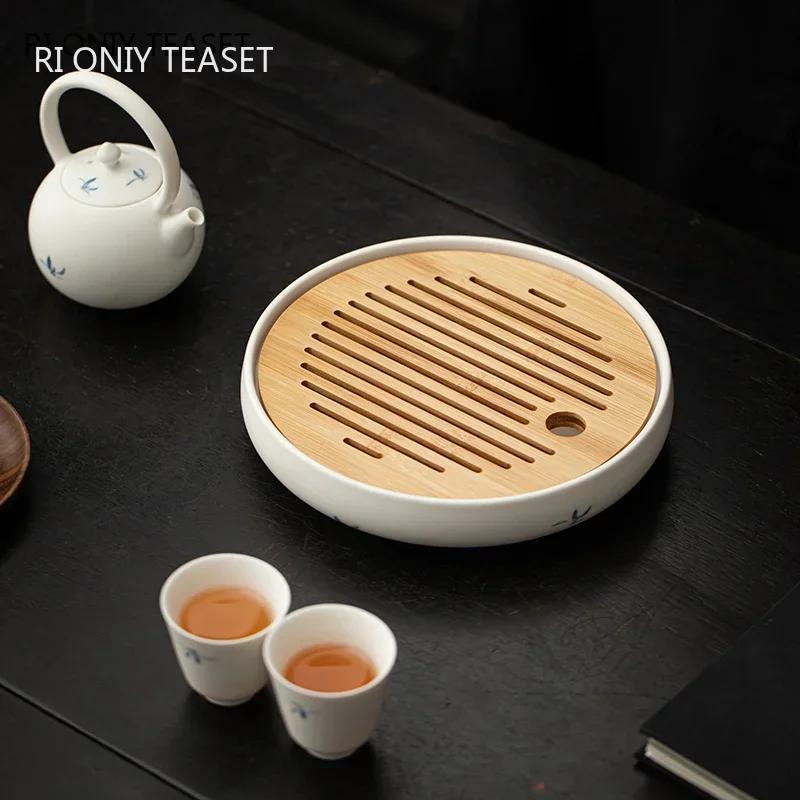 Chinese Hand-painted Orchid Ceramics Tea Tray Water Storage Round Trays Household Pot Bearing Teapot Mat Tea Set Accessories