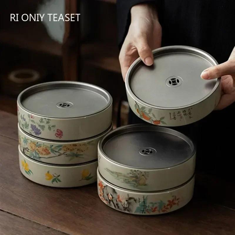 Round Ceramics Tea Tray Drainage Water Storage Tray Household Pot Bearing Teapot Teacup Mat Chinese Tea Set Decors Accessories