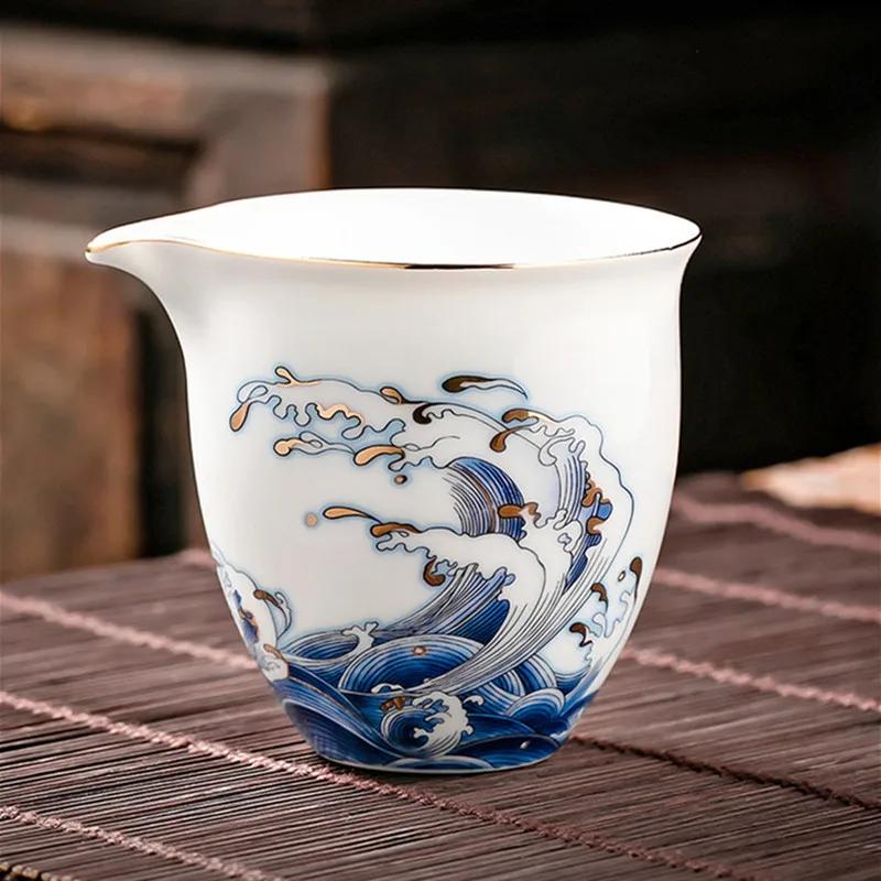 Chinese Color Enamel Ceramic Fair Cup Waves Pattern Porcelain Teacup Beauty Tea Infuser Master Handmade Tea Set Accessories