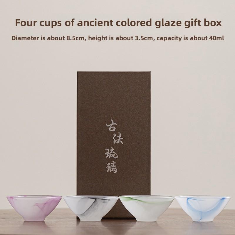 Chinese Ink Painting Glass Tea Cup Bamboo Hat Shape Gongfu Teaware Set with Gift Box for Home Ceremony Collection