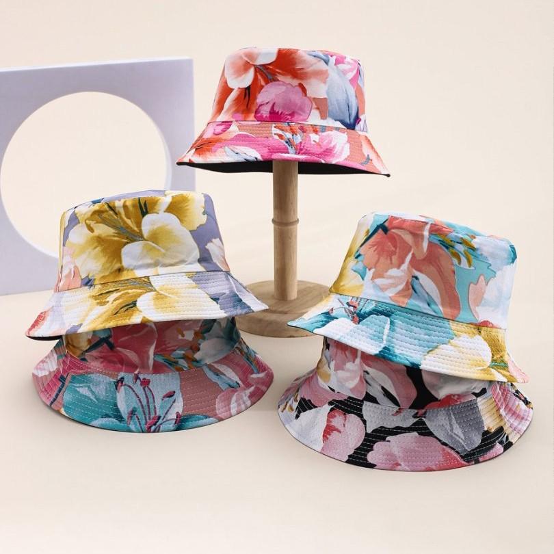Flower Pattern Bucket Hat Men'S Double-Sided Basin Hat Women'S Trend Versatile Outdoor Sun Hat