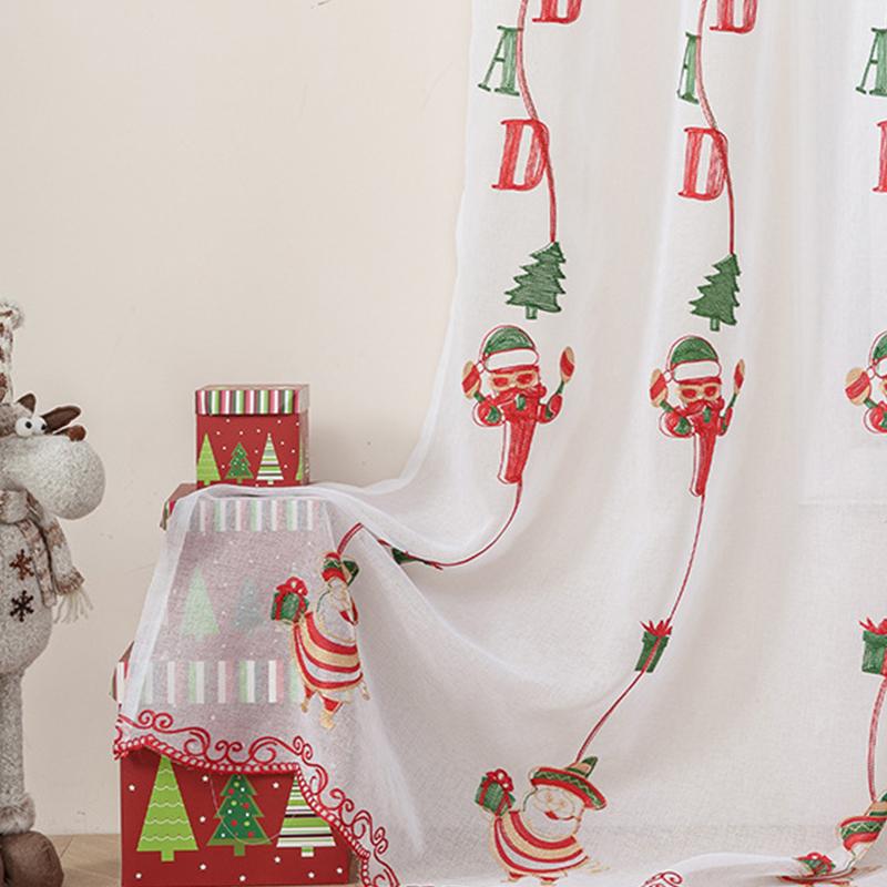 Christmas Santa Claus Embroidered Curtain American Style Festive Atmosphere Decor Sheer Pole Curtain for Living Room Bedroom