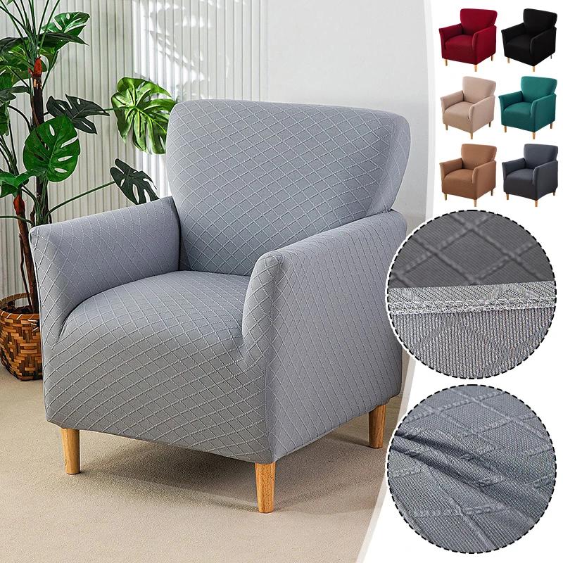 1pc Grid Jacquard Club Chair Cover Stretch Tub Armchair Slipcovers Elastic Single Sofa Couch Covers Living Room Bar Hotel