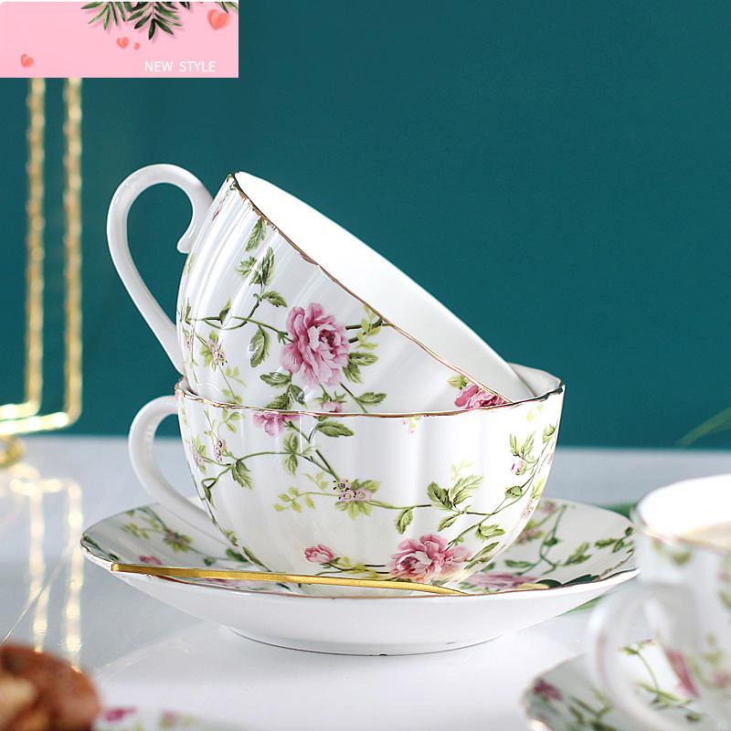 Elegant High-End Coffee Cup Saucer Set, Bone China, Flower Tea Set, British Afternoon Porcelain, Home Drinkware