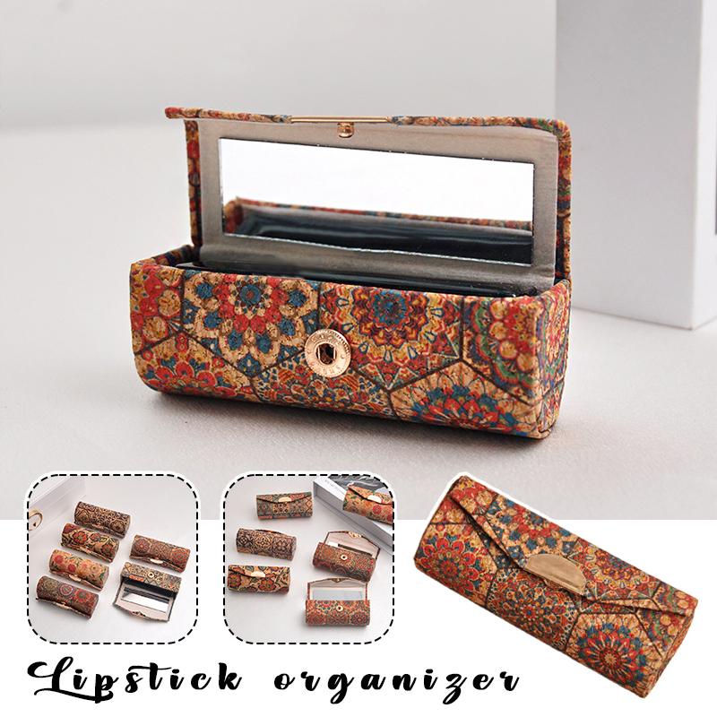1pc Lipstick Case With Mirror Lipstick Case Retro Floral Wooden Lipstick Box Mini Portable Jewelry Case Home Storage Box