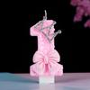 1pc Number Cake Candle Pink Glitter Birthday Candle 0-9 3D Number Candle Cake Topper Birthday Party Cake Decor