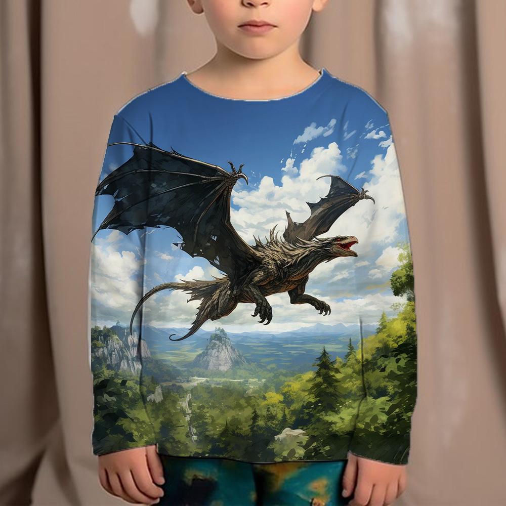Korean Children's Clothing 2023 Kids Replica Brands 3d Print Animals Dinosaur Tops For Boys Fashion Autumn T-Shirt Full Sleeve