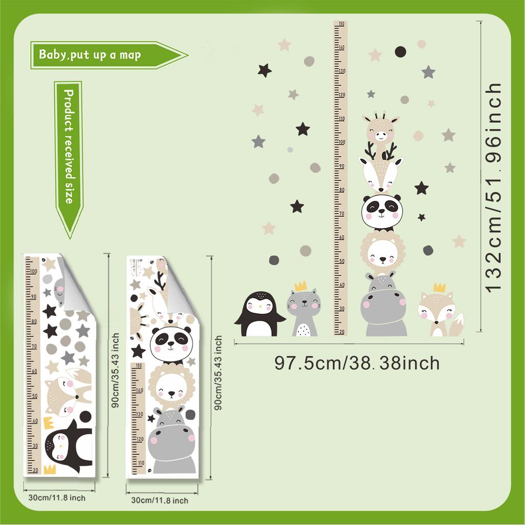 Little Animals Stacking Height Chart Wall Sticker Removable Background Decor for Bedroom Living Room Home Decoration