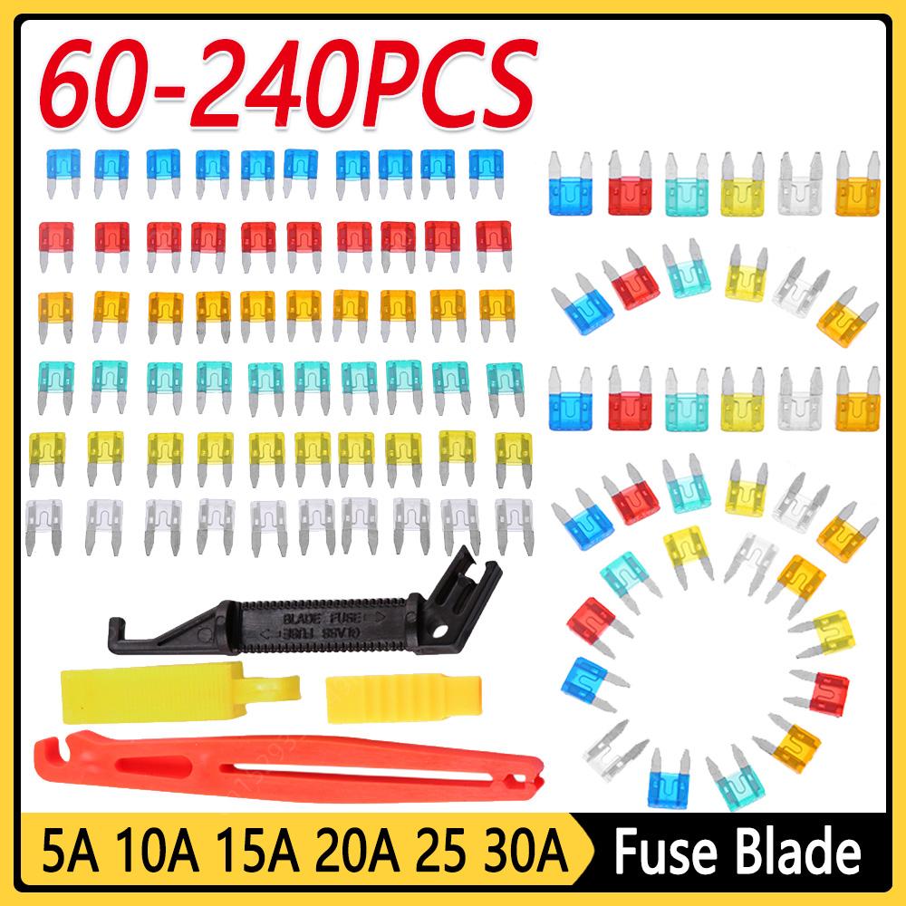 240-60pcs Car Styling Auto Safety Blade 5A 10A 15A 20A 25A 30A Mixed Set Kit Auto Car Fuses Assortment Set Mini Blade Fuse Repla
