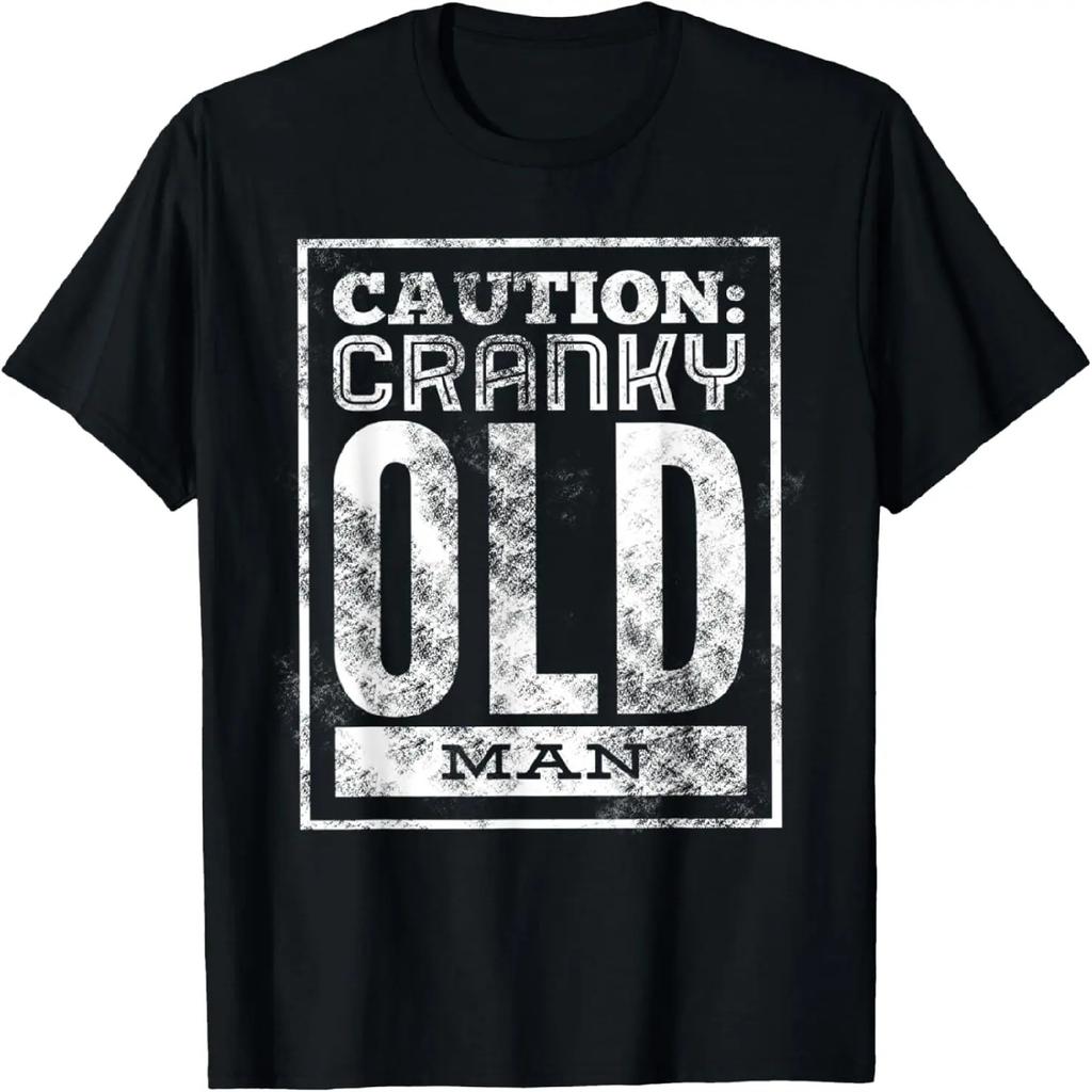 Mens Caution Cranky Old Man Birthday Shirt Funny Novelty T-Shirt