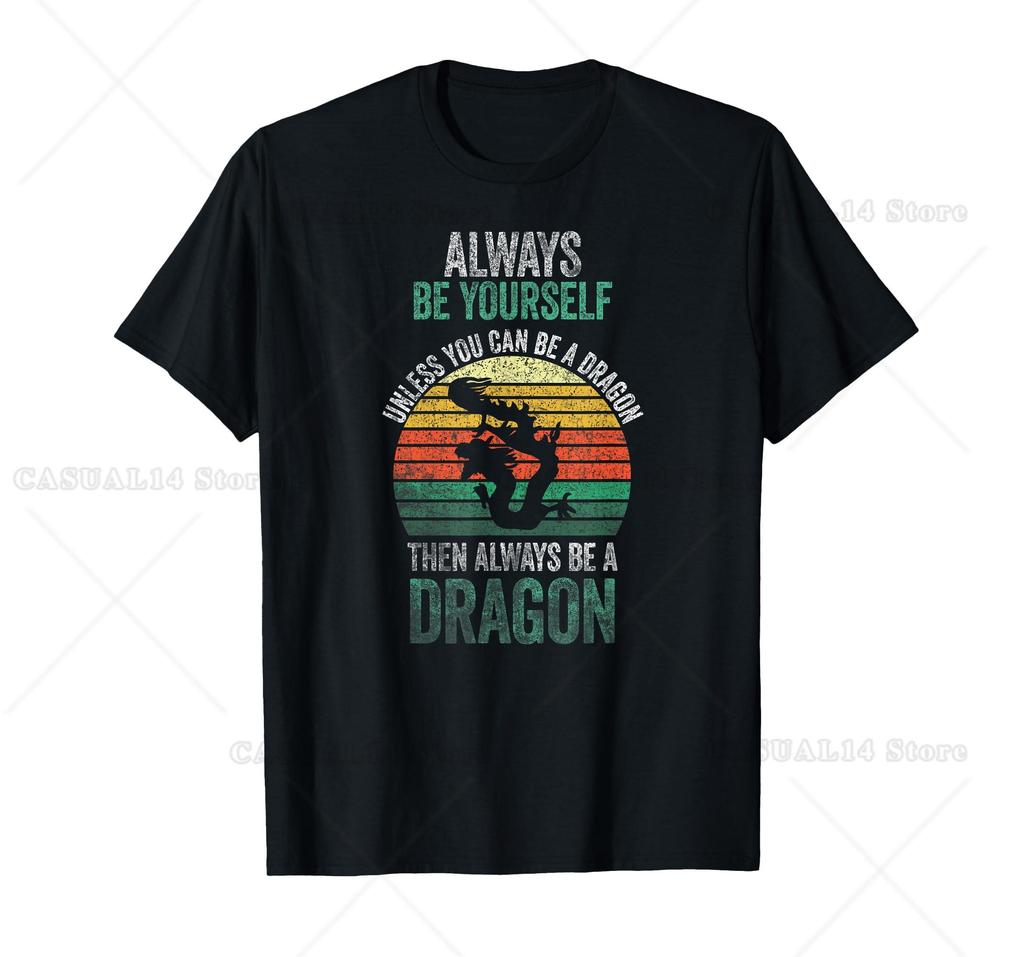 Always Be Yourself, Unless You Can Be A Dragon T-Shirt Round Neck Cotton Machine Washable Soft Print Unisex Teens Adults Daily