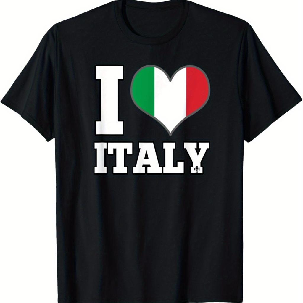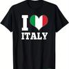 I Love Italy Flag Heart Graphic T-Shirt Unisex Short Sleeve Casual Cotton Crew Neck Tee