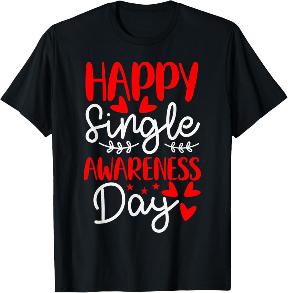 Happy Single Awareness Day Anti Valentines Funny Graphic T-Shirt Men Daily Casual Cotton Tee