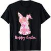 Pink Floral Easter Bunny Rabbit Graphic T-Shirt Cute Floral Festive Cotton Crew Neck Tee for Women