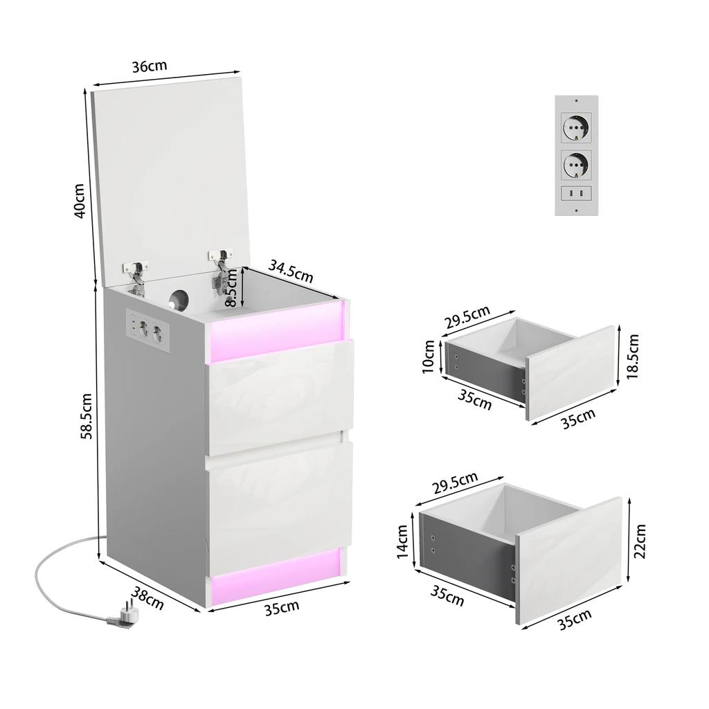 Bedside Table With Lighting 2-Drawer Bedside Cabinet With Drawer End Table Square Solid Wood Sofa Bedroom Side Nightstand