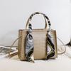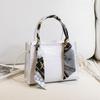 The adjustable and detachable shoulder strap offers flexibility in carrying styles, and the silk scarf decoration not only enhances the bag's aesthetic but also provides a unique and personalized touch.