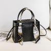 This stylish tote - style shoulder bag features a retro and elegant design. The outer is crafted from a high - quality texture fabric with an embossed crocodile - like pattern, giving it a luxurious and high - end look. It comes in a soft beige color (also available in white, pink, and black), exuding a sense of sophistication. A colorful silk scarf is artfully tied around the handle, adding a touch of charm and a pop of color. The bag has a structured shape with clean lines and a gold - toned zipper for a refined finish.