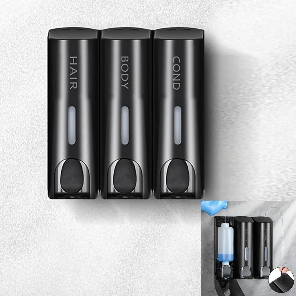 3 Headed 350ml Hand Soap Shampoo Dispenser Wall Mount Shower Liquid Dispensers Containers for Bathroom Washroom