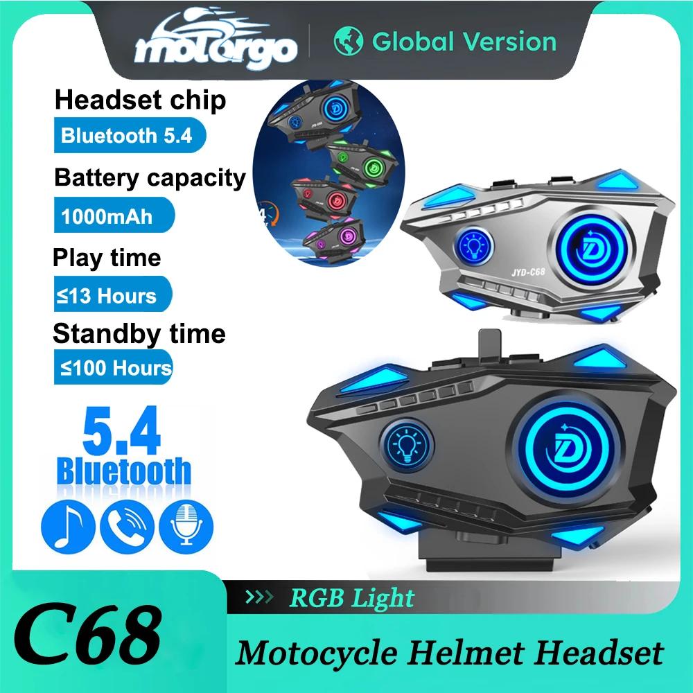 JYD-C68 Motorcycle Helmet Headset Bluetooth 5.4 RGB Light Motorcycle Waterproof Earphone MP3 Music Player Speaker for Moto