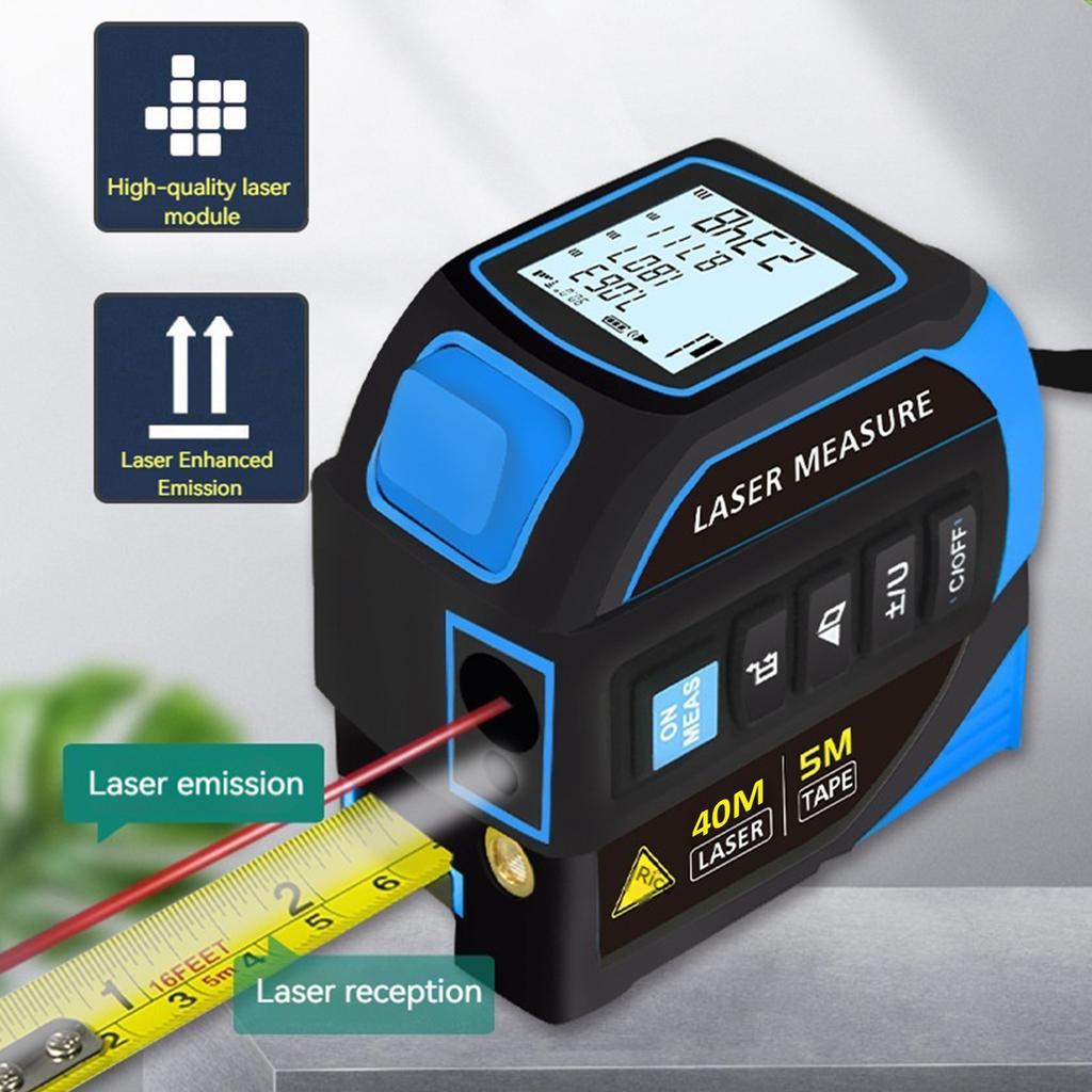 4 In 1 Tape Measure Ruler with Crosshairs Backlight Distance Meter LCD Screen Digital Display Measurement Device for Home Garage