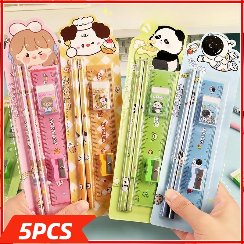 5PCS Cartoon Pencil Stationery Set Small Gift Student Souvenir Student 5 Piece Set Eraser Ruler Roller Pencil Knife Wholesale