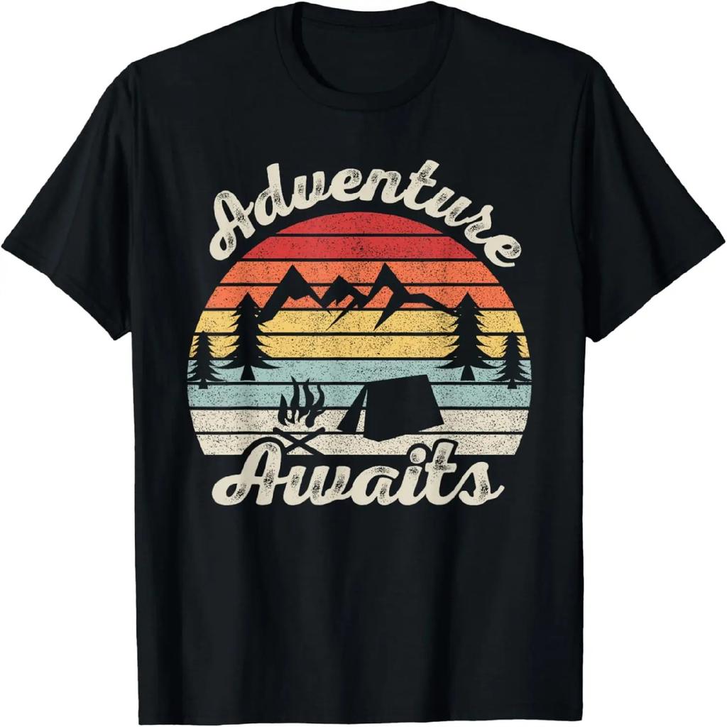 Vintage Retro Adventure Awaits Camping Hiking Outdoor Travel T-Shirt