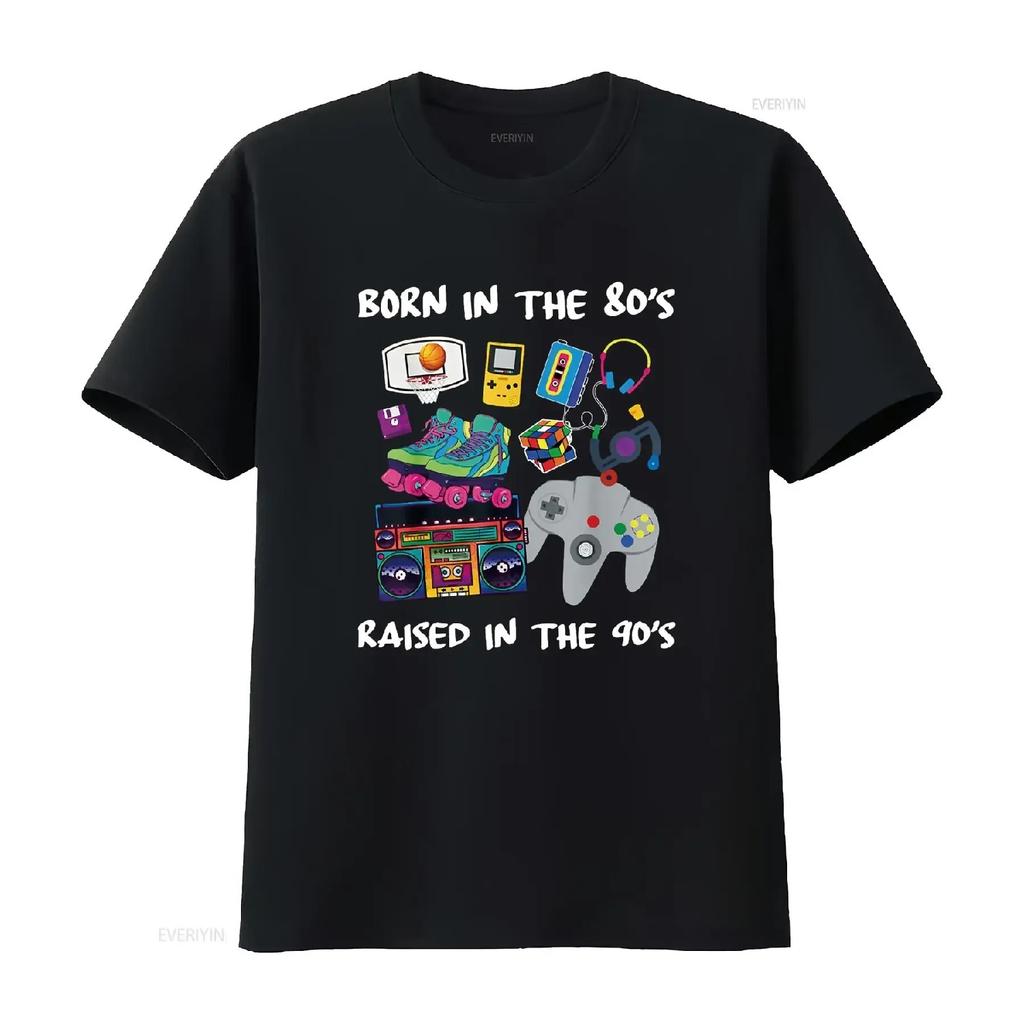 Born In the 80 S Raised 90 T Shirt Black 4X Large Vintage Washed Stretched Streetwear Stylish Designer Clothes Unisex
