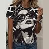 Girl 3D Printed Women's T-shirt Summer Round Neck Short Sleeved T-shirt